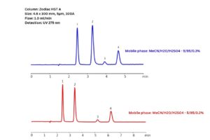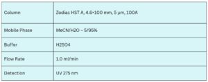 Pyrazinamide, an essential medicine listed by the World Health Organization for treating tuberculosis, can be effectively separated from structurally similar pyrazine compounds using a Zodiac HST A mixed-mode column. These compounds can be challenging to separate in reverse-phase HPLC, but the Zodiac HST A column, with its stationary phase containing strong acidic ion-pairing groups, provides efficient retention. The analysis is performed using an isocratic method with a mobile phase of acetonitrile (ACN) and water, with sulfuric acid (H₂SO₄) as the buffer. UV detection at 275 nm ensures high sensitivity and accuracy in the separation process.