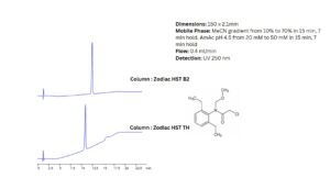 Alachlor is a herbicide that acts by inhibiting the gibberellin biosynthesis pathway. Its use has been banned by both the European Union and the U.S. EPA due to safety concerns. The European Union Reference Laboratory (EURL) included alachlor in a multiresidue pesticide analysis of teas and chamomile using both liquid and gas chromatography techniques. A single multiresidue method was developed utilizing Primesep B2 and Zodiac HST TH columns to cover a broad range of pesticides. The Zodiac HST TH column features embedded ionic and hydrophobic groups for refined separation, while the Primesep B2 column incorporates embedded basic ion-pairing groups. The method is LC/MS compatible and offers a robust approach for analyzing alachlor and related pesticide residues.