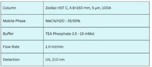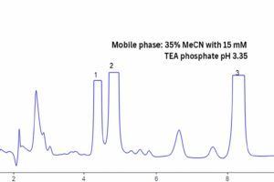The separation of codeine in pharmaceutical formulations was achieved using mixed-mode HPLC. The method demonstrates how buffer concentration and pH significantly influence retention and selectivity, enabling fine-tuning of separation conditions for optimal resolution.