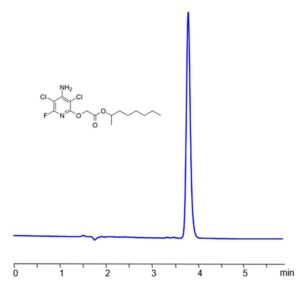 Fluroxypyr-meptyl can be analyzed using a Zodiac HST OG column under isocratic conditions with a mobile phase of water, acetonitrile (MeCN), and sulfuric acid (H₂SO₄). Detection is performed using UV at 220 nm, ensuring high resolution and peak symmetry. The Limit of Detection (LOD) varies based on instrumentation and laboratory conditions.