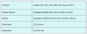 The compound can be effectively retained, separated, and analyzed using the Zodiac HST OG mixed-mode column. The method utilizes a gradient elution with a mobile phase consisting of water, acetonitrile (MeCN), and sulfuric acid as a buffer. Detection is carried out by UV at 240 nm, offering reliable separation and sensitivity.