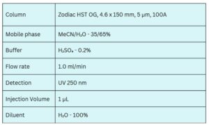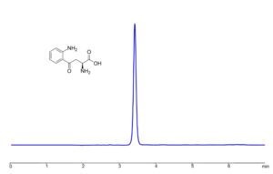 Kynurenine can be retained, separated, and analyzed using a Zodiac HST OG mixed-mode stationary phase column. The analysis follows an isocratic method with a simple mobile phase consisting of water, acetonitrile (MeCN), and sulfuric acid as a buffer, with detection performed using UV at 200 nm.