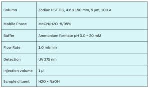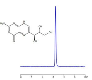 Biopterin is analyzed using a Zodiac HST OG column (4.6 × 150 mm, 5 µm, 100 Å) under isocratic conditions with a mobile phase of water, acetonitrile (MeCN), and ammonium formate. Detection methods include UV at 275 nm, ELSD, CAD, and ESI-MS. The Limit of Detection (LOD) varies depending on instrumentation and laboratory conditions.