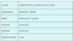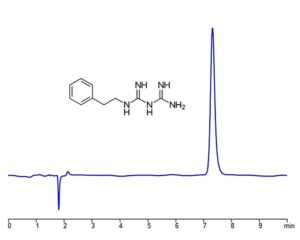 Phenformin can be retained and analyzed using a Zodiac HST OG mixed-mode column with an isocratic method (water, MeCN, ammonium formate buffer) and UV detection at 240 nm.