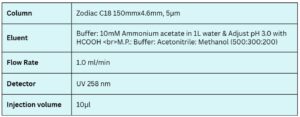 Cefovecin sodium is a third-generation cephalosporin antibiotic commonly used in veterinary medicine. When performing an assay to determine the concentration of cefovecin sodium using a Zodiac C18 column (a type of reverse-phase high-performance liquid chromatography or HPLC column). Adjust parameters based on your system’s performance and the exact requirements of the assay.