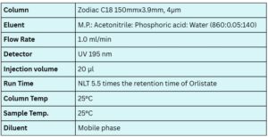 To perform an assay of Orlistat capsules using the USP (United States Pharmacopeia) method with a Zodiac C18 column, you would generally follow a well-established procedure. The USP method for Orlistat assays is detailed in the USP monograph for Orlistat. Below is a summary of how you might perform this assay using a Zodiac C18 column in high-performance liquid chromatography (HPLC). Ensure to refer to the latest USP monograph for Orlistat for the specific details of the method, as the exact conditions and procedures might be updated or vary.