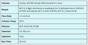 The Zodiac 120 RP Amide column is a reversed-phase HPLC column with an amide-based stationary phase, ideal for separating both polar and non-polar analytes. It offers high resolution and reproducibility in aqueous-organic mobile phases for various analytical applications.