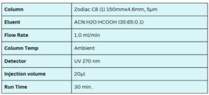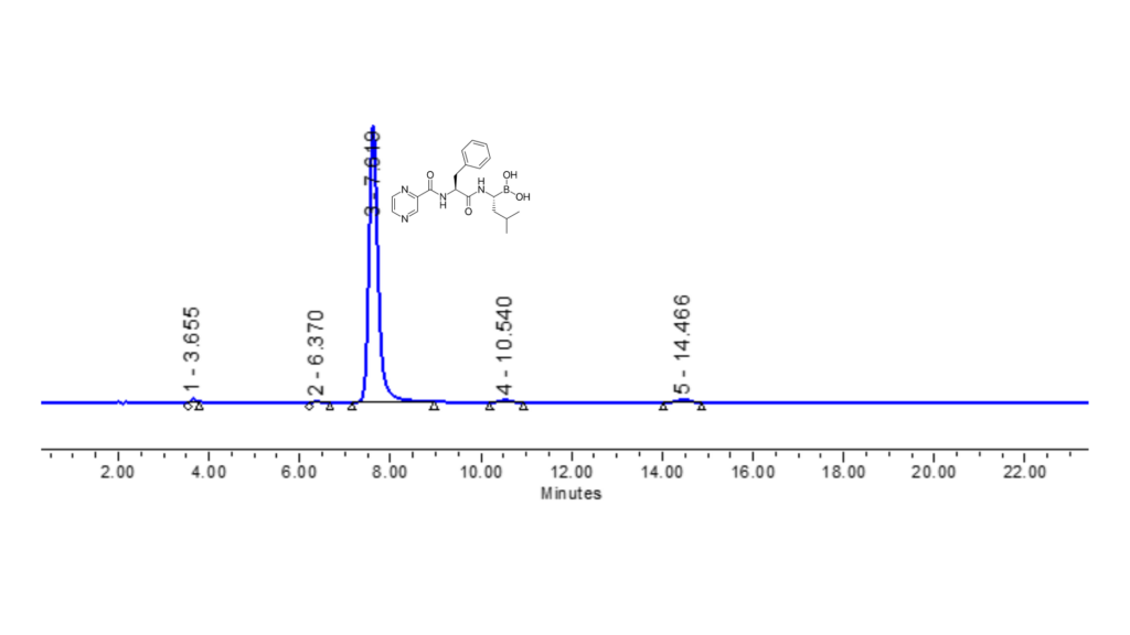The Zodiac C8(1) column, featuring a octyl (C8) bonded silica stationary phase, is engineered for optimal separation in reversed-phase high-performance liquid chromatography (RP-HPLC). Its moderate hydrophobicity and excellent surface stability allow for precise resolution of Bortezomib, ensuring efficient separation from impurities and related substances. The column’s advanced design enhances peak shape and retention time control, making it a reliable choice for the accurate and reproducible analysis of Bortezomib in pharmaceutical applications.