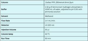 Optimized HPLC method for Chlorthalidone API using the Zodiac PFP column, ensuring enhanced selectivity and superior resolution through π-π and dipole-dipole interactions. Ideal for pharmaceutical analysis with high precision and reproducibility.