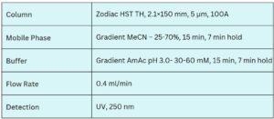 Diphenamid is a pre-emergence herbicide commonly used in the cultivation of tobacco, groundnuts, and tomatoes. To achieve effective retention and separation from impurities, both Zodiac HST TH and Zodiac HST B2 columns were employed. Zodiac HST B2 features embedded basic ion-pairing groups for enhanced interaction with acidic analytes, while Zodiac HST TH offers mixed-mode capabilities through its embedded ionic groups and hydrophobic chain, allowing for fine-tuned separations.