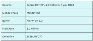 This versatile HPLC approach is ideal for the simultaneous quantification of a wide range of basic drugs and their counter-ions, offering independent control of retention and even the ability to alter elution order when needed—thanks to the dual retention mechanisms of the Zodiac HST RP column.