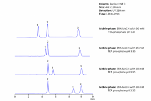 The separation of codeine in pharmaceutical formulations was achieved using mixed-mode HPLC. The method demonstrates how buffer concentration and pH significantly influence retention and selectivity, enabling fine-tuning of separation conditions for optimal resolution.