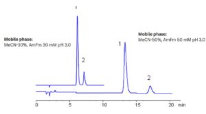 Paraquat and diquat are two of the most widely used herbicides globally, both known for their toxicity to humans and animals. Their presence in water sources is strictly regulated by the EPA. Structurally similar, both compounds contain two quaternary amine groups, making them highly polar and strongly basic, which poses a challenge for traditional reversed-phase chromatography due to poor retention and peak shape caused by residual silanol interactions.