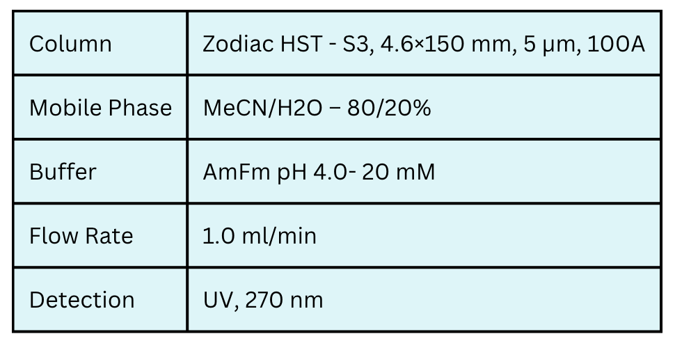 Pyridylacetic acids, including 2-pyridylacetic acid, 3-pyridylacetic acid, and 4-pyridylacetic acid, are compounds derived from pyridine, commonly used in various chemical and pharmaceutical applications. The analysis of these acids can be effectively performed using High Performance Liquid Chromatography (HPLC) on a Zodiac HST-S3 column. The analysis employs a simple mobile phase composed of water and acetonitrile (MeCN), and detection is achieved using UV at a suitable wavelength. This method allows for the separation and quantification of the different pyridylacetic acid isomers with high precision.