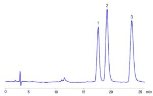 Uridine sugar diphosphates, including UDP-Galactose, UDP-Glucose, and UDP-N-acetylglucosamine (UDP-GlcNAc), are vital nucleotide sugars involved in numerous cellular metabolic processes. These compounds can be detected in the low UV range. Using a ZODIAC HST S3 mixed-mode stationary phase column, these uridine sugar diphosphates can be retained, separated, and analyzed. The analysis employs an isocratic method with a mobile phase comprising water, acetonitrile (MeCN), and an ammonium formate (AmFm) buffer. Detection is achieved using UV at 260 nm, providing accurate separation and identification of these compounds.