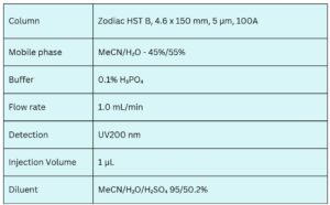 Carvacrol can be effectively retained and analyzed by HPLC using the Zodiac HST B mixed-mode column. The method employs a simple isocratic mobile phase composed of acetonitrile (MeCN), water, and phosphoric acid as the buffer. Detection is performed using UV at 200 nm, making it suitable for routine analysis of phenolic compounds in essential oils.