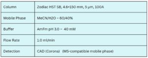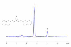 Didodecyldimethylammonium bromide, a quaternary ammonium compound, is effectively retained and separated using the Zodiac HST-SB mixed-mode column. The method provides sharp peak shape and is suitable for ELSD or MS detection.