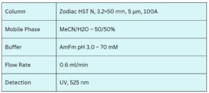 Zodiac HST N, a highly polar HPLC column with embedded acidic and basic ionizable groups, effectively retains and separates Sunset Yellow. The method is suitable for both LC/MS and UV detection and provides a versatile platform for the analysis of structurally similar polar compounds.