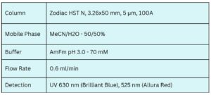 HPLC Method for Analysis of Dyes in Walgreen’s Night Time Cough on Zodiac HST N Column
