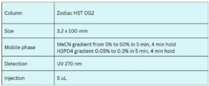 Ketoprofen is a nonsteroidal anti-inflammatory drug (NSAID) belonging to the Ibuprofen class, with analgesic, anti-inflammatory, and antipyretic properties. It is commonly prescribed for the treatment of rheumatoid arthritis and osteoarthritis. However, its use may be associated with an increased risk of stroke. The Zodiac HST OG2 mixed-mode reversed-phase column, which features embedded acidic ionizable groups, effectively retains Ketoprofen. This UV-compatible method offers a reliable and versatile approach for the analysis of Ketoprofen and other related NSAID compounds.