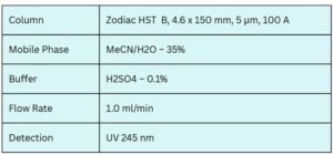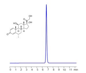 Methylprednisolone can be effectively retained and analyzed using a Zodiac HST B mixed-mode stationary phase column. The analytical method employs an isocratic mobile phase consisting of water, acetonitrile (MeCN), and sulfuric acid as a buffer. Detection is performed using UV at 245 nm, ensuring precise and reliable quantification.