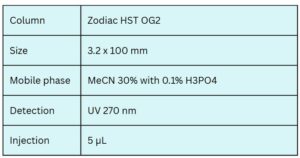 Prednisolone is a synthetic glucocorticoid known for its potent anti-inflammatory and immunomodulatory effects. It acts by binding to specific nuclear receptors, leading to altered gene expression and suppression of proinflammatory cytokine production. Prednisolone is commonly used to manage a variety of conditions, including blood disorders, arthritis, and immune system-related diseases. The Zodiac HST OG2 mixed-mode reversed-phase column, featuring embedded acidic ionizable groups, effectively retains Prednisolone. This UV-compatible method offers a reliable and versatile approach for analyzing Prednisolone and structurally similar compounds.