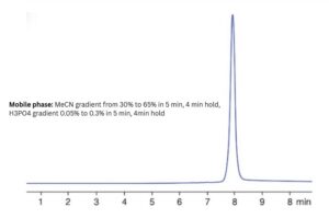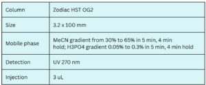 Uloric is a xanthine oxidase inhibitor that works by reducing the production of uric acid in the body. It is commonly used to treat hyperuricemia in patients with chronic gout. The Zodiac HST OG2, a reverse-phase column with embedded acidic ionizable groups, effectively retains Uloric. This UV-compatible method offers a robust and general approach for analyzing similar compounds.