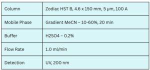 These antifungal agents can be separated, retained, and analyzed on a Zodiac HST B mixed-mode stationary phase column. The method employs a gradient elution using a mobile phase of water, acetonitrile (MeCN), and sulfuric acid as a buffer. Detection is performed using UV at 200 nm.