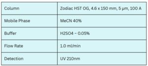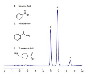 Nicotinic acid, nicotinamide, and tranexamic acid can be retained and analyzed using a Zodiac HST OG mixed-mode column with an isocratic method employing water, acetonitrile (MeCN), and sulfuric acid as a buffer, with UV detection at 210 nm.