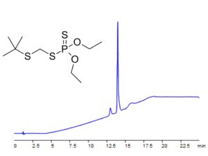 Terbufos is a highly toxic organophosphate insecticide and nematicide. The Zodiac HST TH column is employed to retain terbufos and achieve effective separation from impurities. This column integrates embedded ionic and hydrophobic groups in the stationary phase, allowing fine-tuning of separation conditions. The method is LC/MS compatible and can be applied broadly for the analysis of terbufos, other organophosphate insecticides, and numerous additional pesticides.