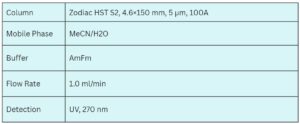 DescriptionAmino acids can be retained and separated on a Zodiac HST S2 column in HILIC/cation-exchange mode.Condition PhenylalanineTyrosineDOPAColumn Name : Zodiac HST S2Compound Name :PhenylalanineTyrosineDOPAGet Your Quote or Call: 040-29881474We focus on supporting laboratory workflows & optimizing lab-wide operationsContact us