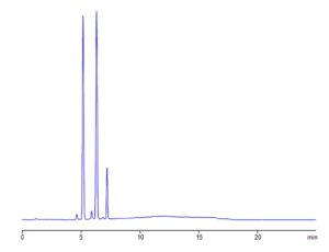 Benzalkonium chloride (BTC) is a mixture of alkylbenzyldimethylammonium chlorides with various even-numbered alkyl chain lengths and is commonly used as a surfactant. In conventional reversed-phase chromatography, hydrophobic quaternary amines like BTC often exhibit poor peak shapes due to interactions between the quaternary ammonium groups and residual silanol sites on the silica surface. The Zodiac HST RP column, a reversed-phase anion-exchange column with embedded basic functional groups, effectively shields silanol interactions, resulting in sharp, symmetrical peaks for hydrophobic amines—quaternary, tertiary, secondary, and primary.