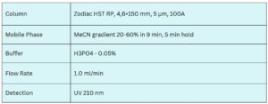 For optimal performance, analytes must possess sufficient hydrophobicity to overcome the repulsive forces from the stationary phase. BTC can be detected using ELSD or UV, and the Zodiac HST RP column also retains acidic counter-ions associated with quaternary amines. This allows for simultaneous analysis of both hydrophobic basic and hydrophilic acidic compounds in a single run.