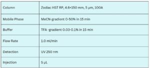 The separation of hydrophilic isomers is particularly challenging when using a single retention mechanism such as reversed-phase chromatography, as isomers often exhibit nearly identical hydrophobic characteristics. However, in mixed-mode chromatography, subtle differences in both hydrophobicity and ionic properties can be exploited for effective resolution. Using the Zodiac HST RP column, isomers of dihydroxybenzoic acid were successfully separated with excellent selectivity and peak shape. This approach is also applicable to the analysis of other hydrophilic acidic compounds as well as hydrophobic basic analytes, offering a versatile solution for complex separations.