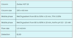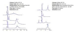 Heparin and pentosan are highly sulfated glucosaminoglycans commonly used in the pharmaceutical industry. Their high negative charge density from multiple sulfate groups and polar, polymeric nature make them challenging to separate and quantify. Using the Zodiac HST S3 column in HILIC/anion-exclusion mode enables effective separation of heparin and its salts, along with pentosan. This method is suitable for quantitation in biological fluids and pharmaceutical formulations, with detection by ELSD, CAD, or LC/MS.