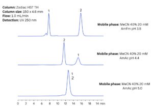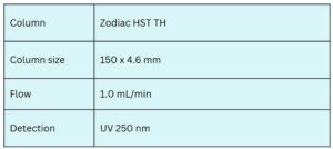 Tylosin is an antibiotic widely used in veterinary medicine and occurs naturally as a fermentation product. Due to the presence of multiple sugar moieties and amino groups, tylosin and other aminoglycosides cannot be effectively analyzed using conventional reversed-phase HPLC under LC/MS-compatible conditions. Mixed-mode chromatography overcomes this limitation by enabling retention and separation of such polar, basic compounds. The Zodiac HST TH column was used for this purpose, offering efficient analysis of aminosugar-based antibiotics including streptomycin, neomycin, amikacin, arbekacin, dibekacin, framycetin, kanamycin, gentamicin, verdamicin, astromicin, hygromycin, and others.