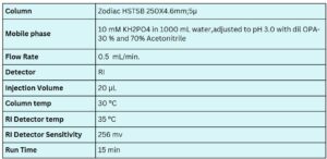 A robust and reliable HPLC method designed for the analysis of Hyaluronic and Chondroitin using the Zodiac HSTSB column (250mm × 4.6mm, 5µm). This method ensures high precision, superior resolution, and consistent performance, making it well-suited for pharmaceutical quality control and impurity assessment.