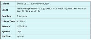 The Zodiac C8(1) column is used for the effective chromatography analysis of the chloro compound of Omeprazole, a proton pump inhibitor. Its unique properties ensure precise separation of Omeprazole chloro compound and related substances, making it an essential tool in pharmaceutical research and quality control.