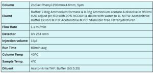 Separating atorvastatin-related substances using a Zodiac Phenyl column involves a specific approach in high-performance liquid chromatography (HPLC). Developing an HPLC method using a Zodiac Phenyl column for separating atorvastatin-related substances involves optimizing the mobile phase composition, gradient elution, and detection conditions to achieve accurate and reproducible results. Method development and validation are crucial steps to ensure the method is suitable for routine analysis in pharmaceutical quality control, adhering to USP guidelines and regulatory requirements.