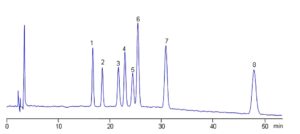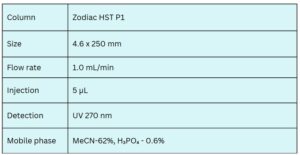 Eight bendazoles can be separated using the Zodiac HST P1 column through a combination of reverse-phase and ion-exchange mechanisms. The mixed-mode approach, including pi-pi interactions, enhances separation. The method is compatible with UV detection.