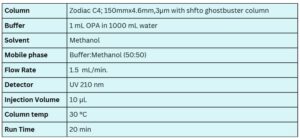 A precise and reliable HPLC method for the assay of Sertraline HCl using the Zodiac C4 column. This method ensures accurate quantification, excellent peak resolution, and reproducibility, making it suitable for pharmaceutical quality control and formulation analysis.