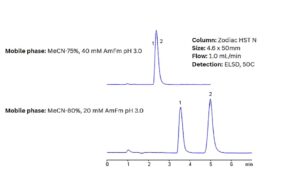 Inorganic cations and anions are traditionally analyzed using separate cation-exchange and anion-exchange methods, requiring the development and validation of two independent protocols. However, both ion types can be simultaneously analyzed using a Zodiac HST N mixed-mode HILIC/ion-exchange column. The retention of both cations and anions is achieved through a combination of hydrophilic interaction and ion-exchange mechanisms. Detection is compatible with ELSD, offering a unified and efficient approach for comprehensive ionic analysis.