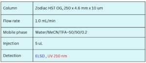 Although ELSD is not inherently linear at low concentrations, the Zodiac HST OG column allows robust quantification through: